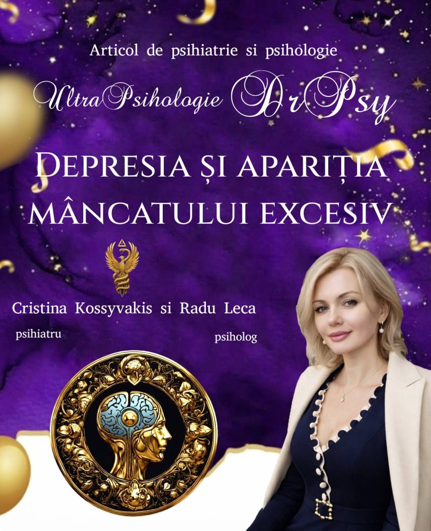 Celebra psihiatră Cristina Kossyvakis alături de psiholog Radu Leca vă propun următorul articol. Ce reprezintă conexiunea clinică dintre episodul depresiv și mâncatul excesiv în psihologie și psihiatrie? Episodul depresiv se definește prin dispoziție depresivă sau anhedonie, asociate cu modificări vegetative, cognitive și psihomotorii, iar mâncatul excesiv se descrie ca ingestie de cantitate mare de alimente…