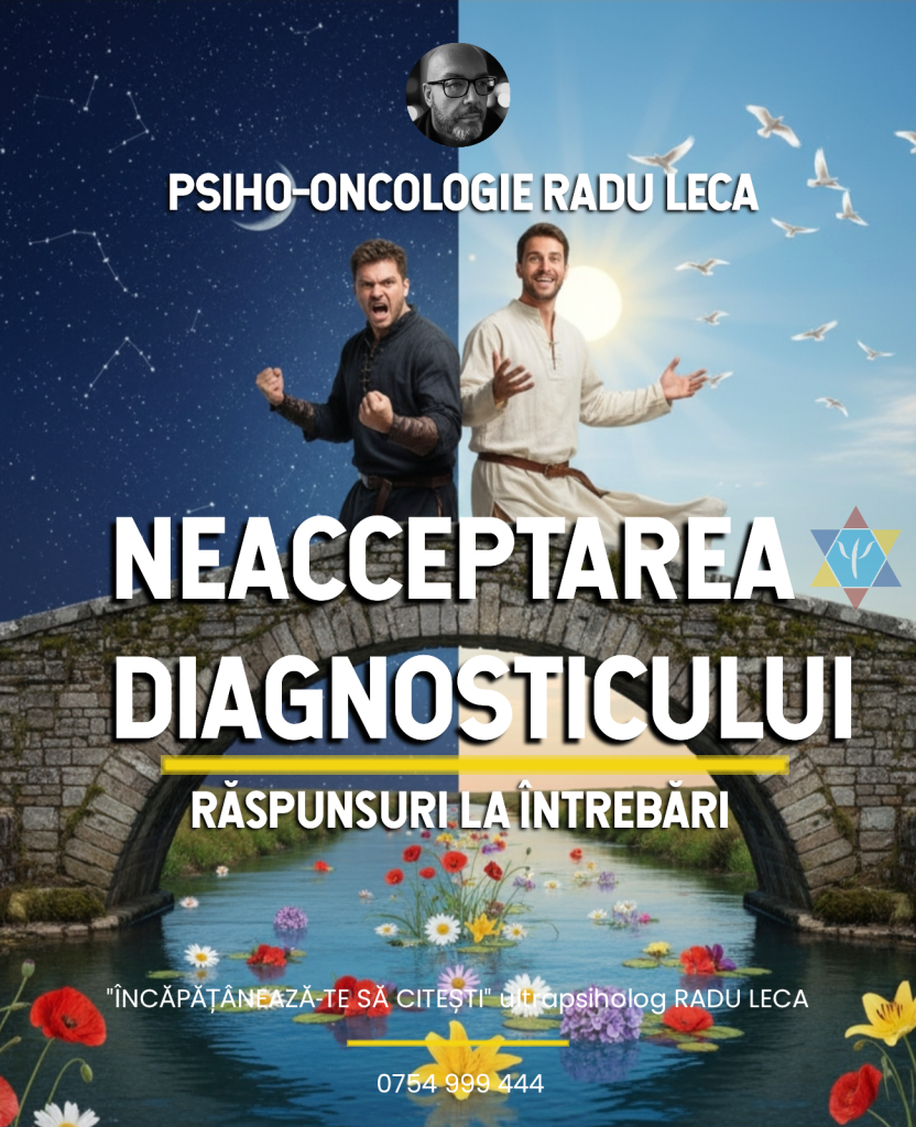 Psiholog Radu Leca, cu formare în psiho-oncologie îți propune 50 de motive, explicate succint dar în profunzime, (si din perspectiva unui psiholog clinician cu formare în terapie de familie), ce se conectează cu NEACCEPTAREA Diagnosticului Oncologic.